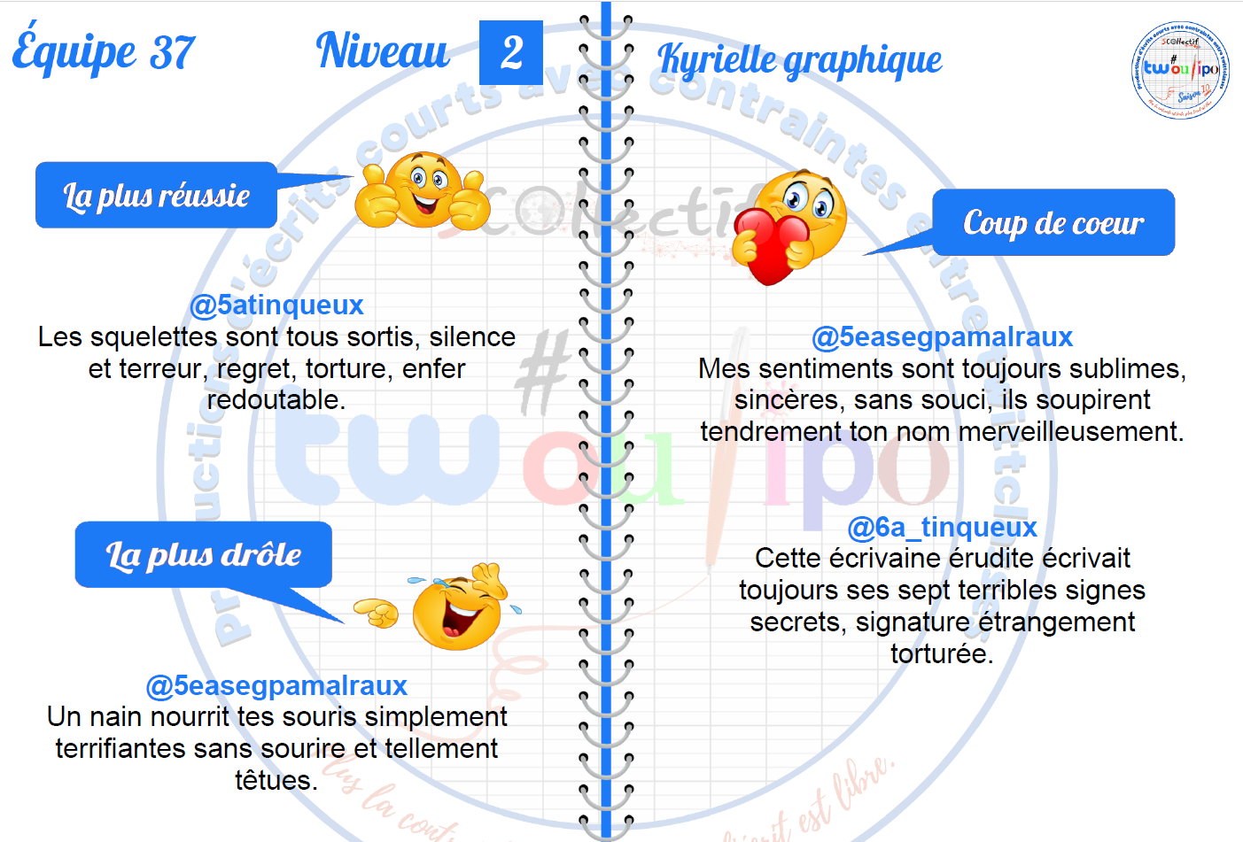 Le mois TWOULIPO avec les 5A : résultats et diplôme